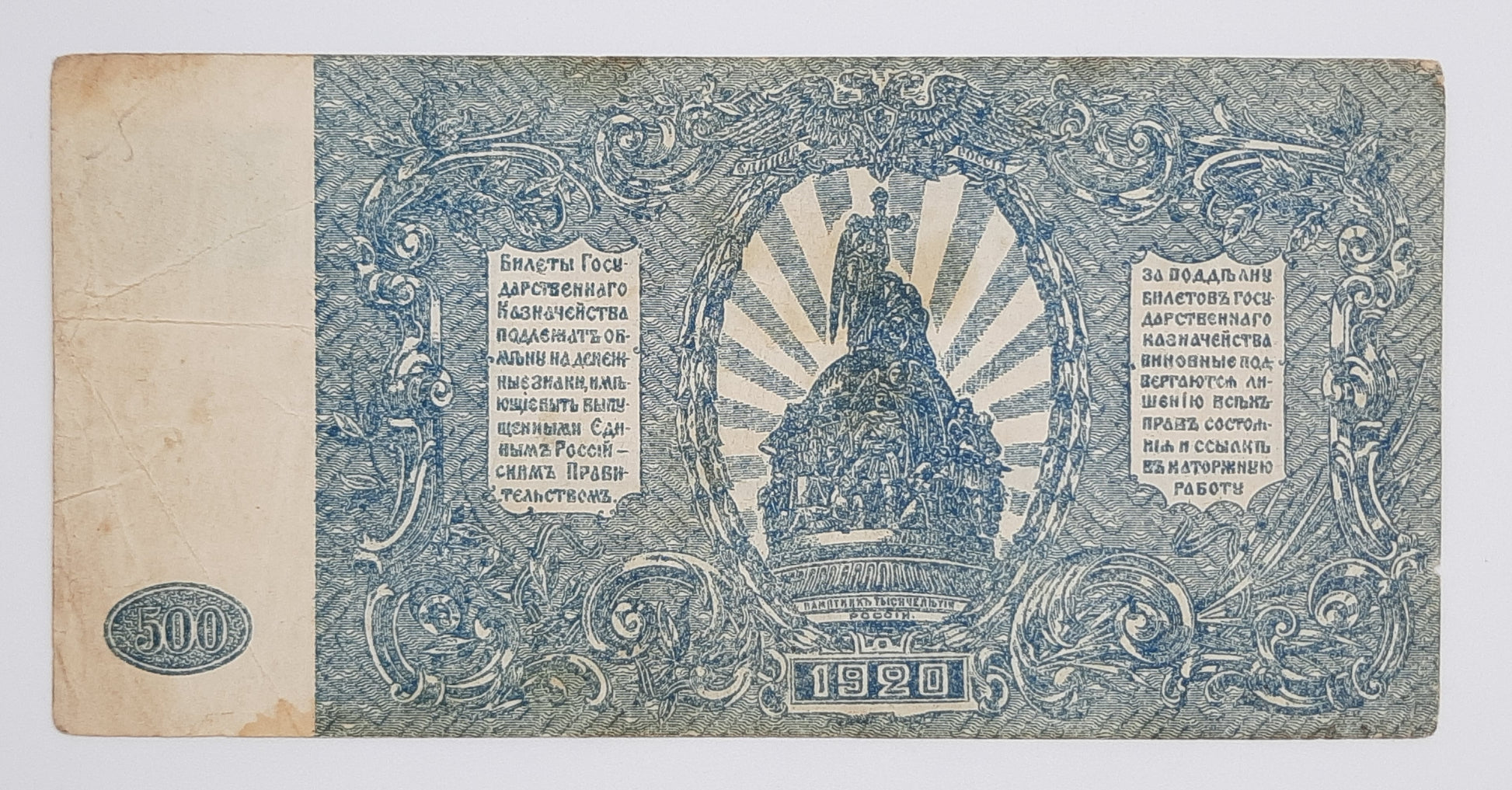 Explore the 1920 Russia 500 Rubles note (P-S434), a fascinating piece from the turbulent Russian Civil War period.