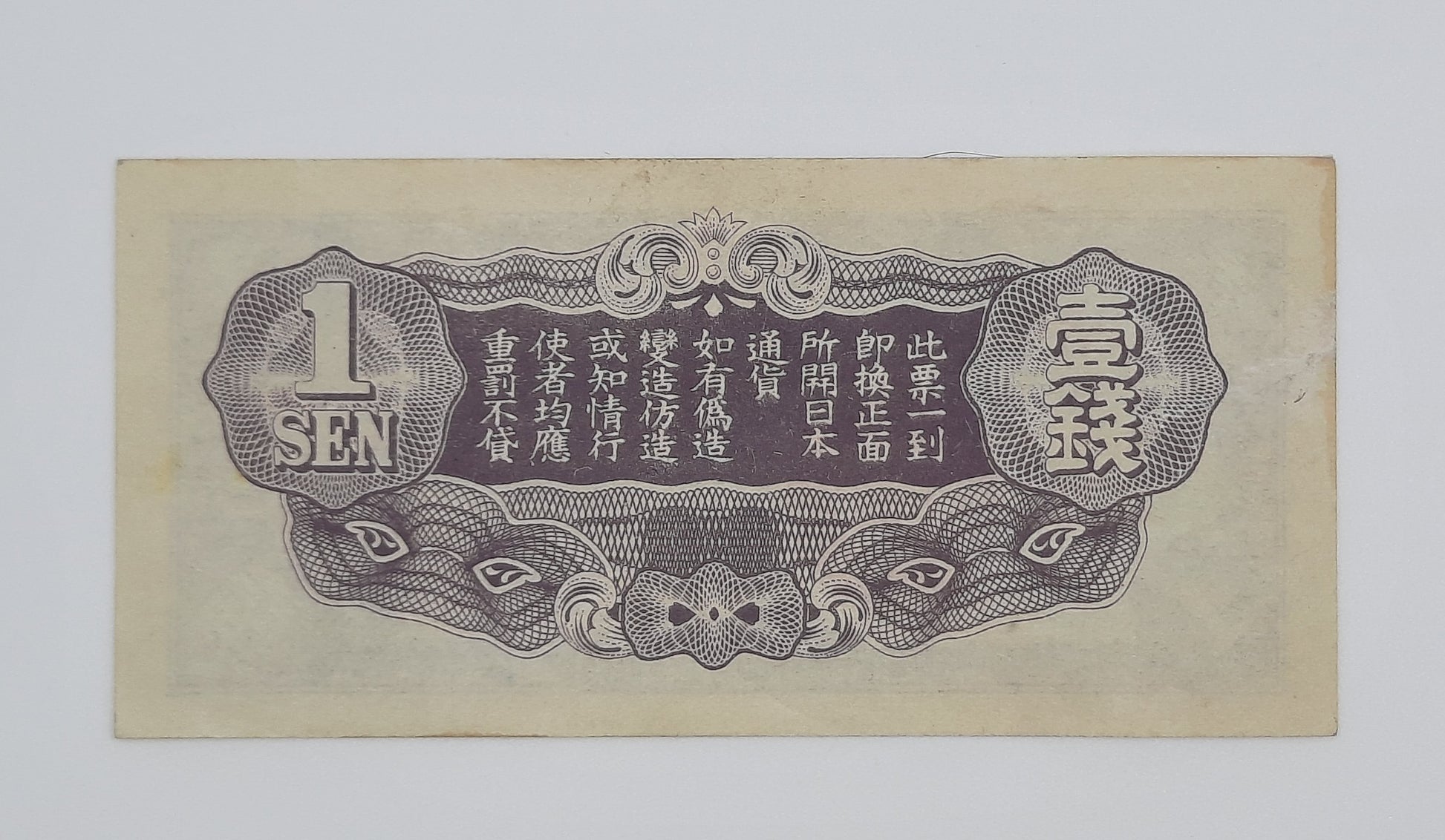 The 1 Sen denomination was among the smallest in the series, intended for daily transactions in a tightly controlled economy. Though officially backed by the Japanese Imperial Government, the currency suffered from limited acceptance and inflation, especially as the war progressed.