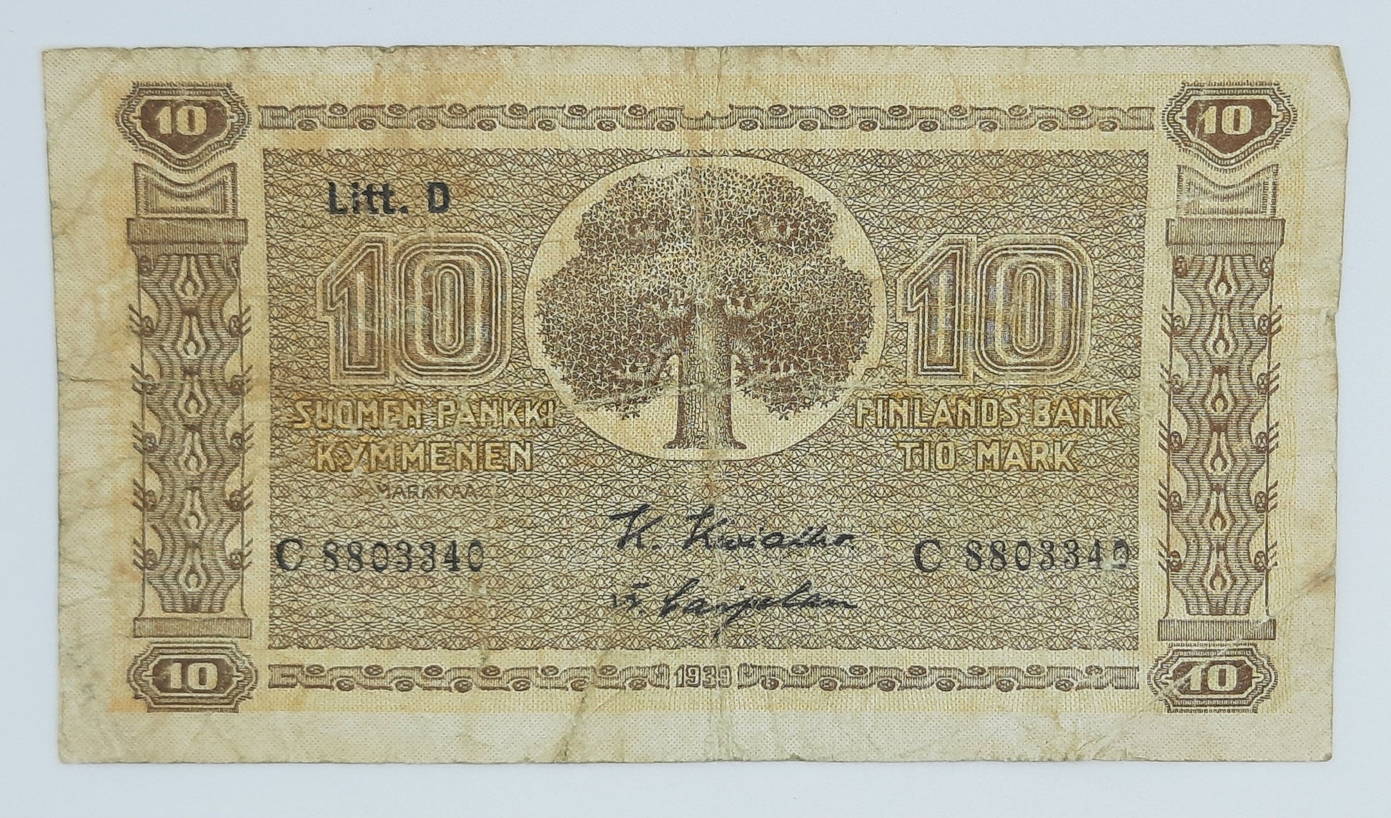🇫🇮 Finland – 10 Markkaa – 1939 – Litt. D
