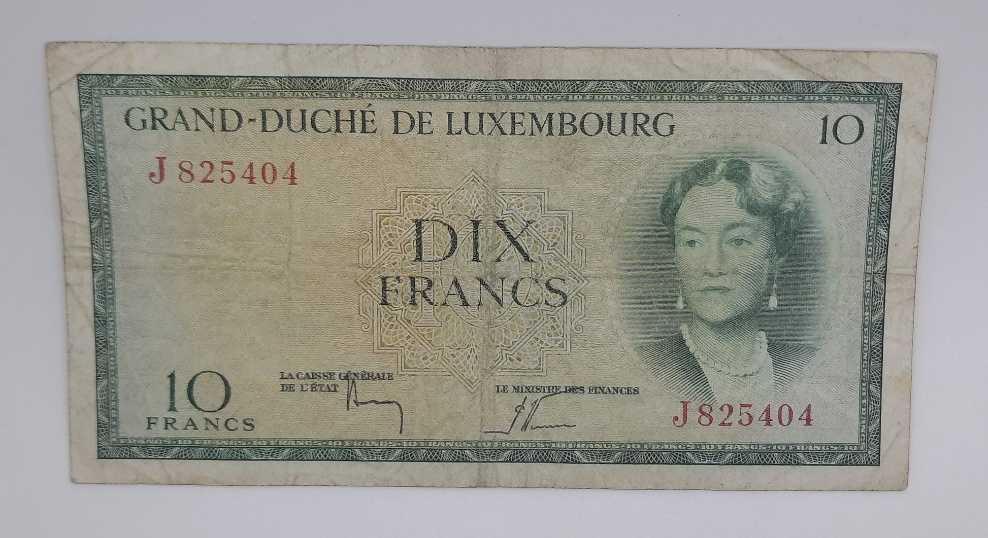 1954 Grand-Duche De Luxembourg - 10 (Ten) Francs Banknote Serial No. J 825404 P-48a