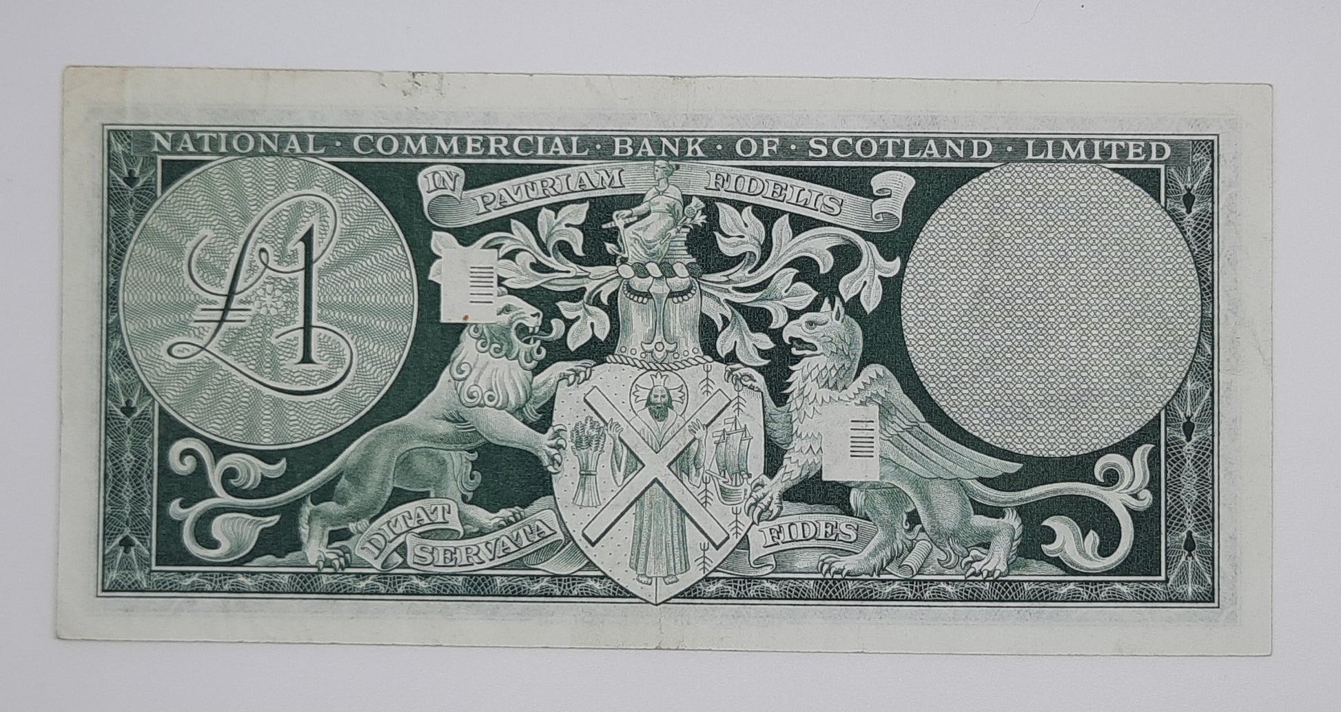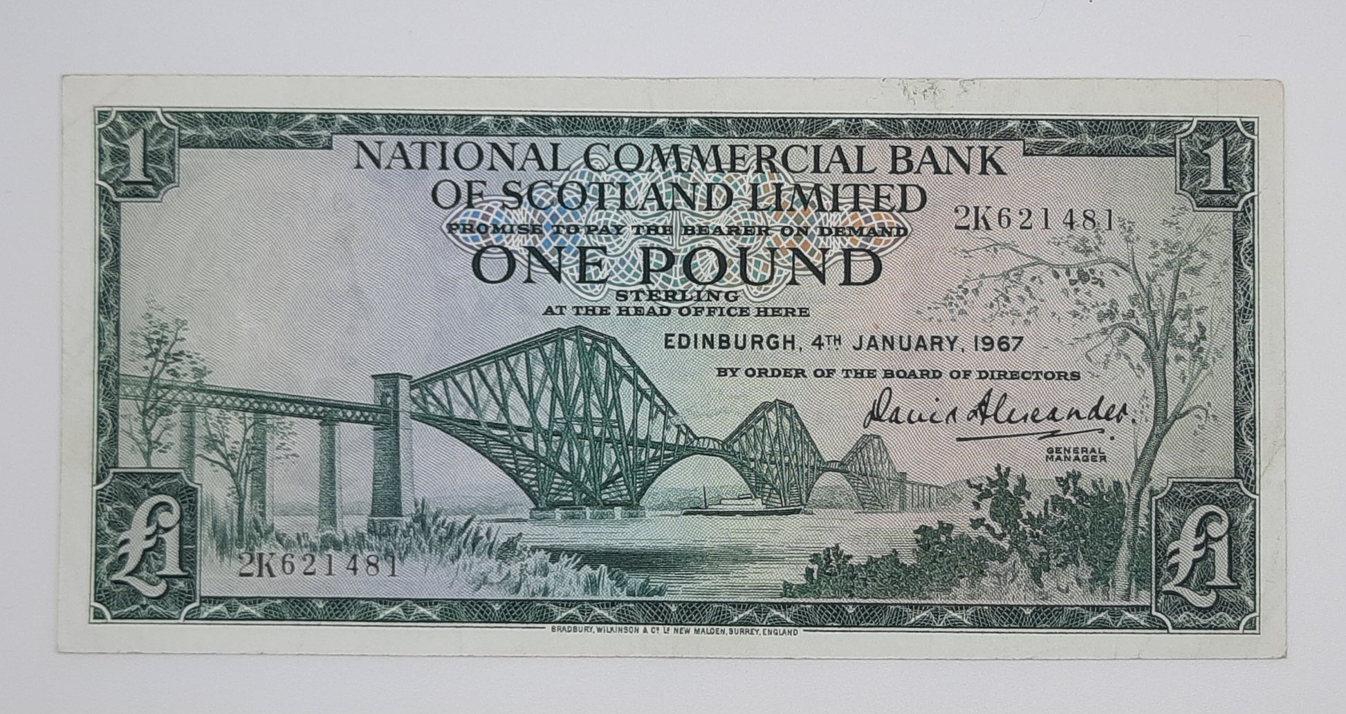 1967 The National Commercial Bank of Scotland UK - £1 (One) Scottish Pound Banknote Serial No. 2K 621481 P-271