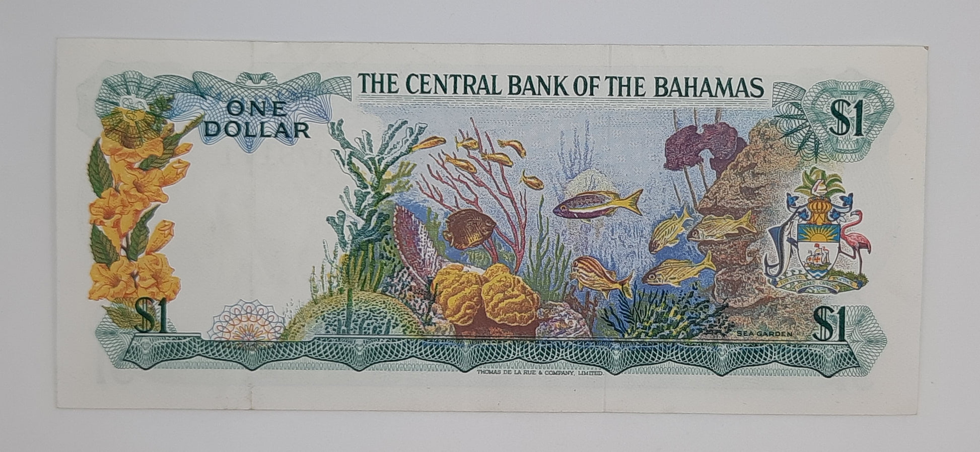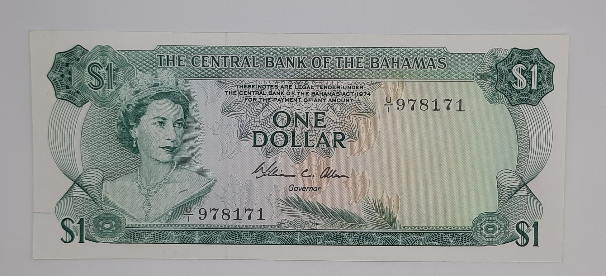 1974 The Central Bank of the Bahamas - 1 (One) Dollar Banknote Serial No. U1 978171 P-35b