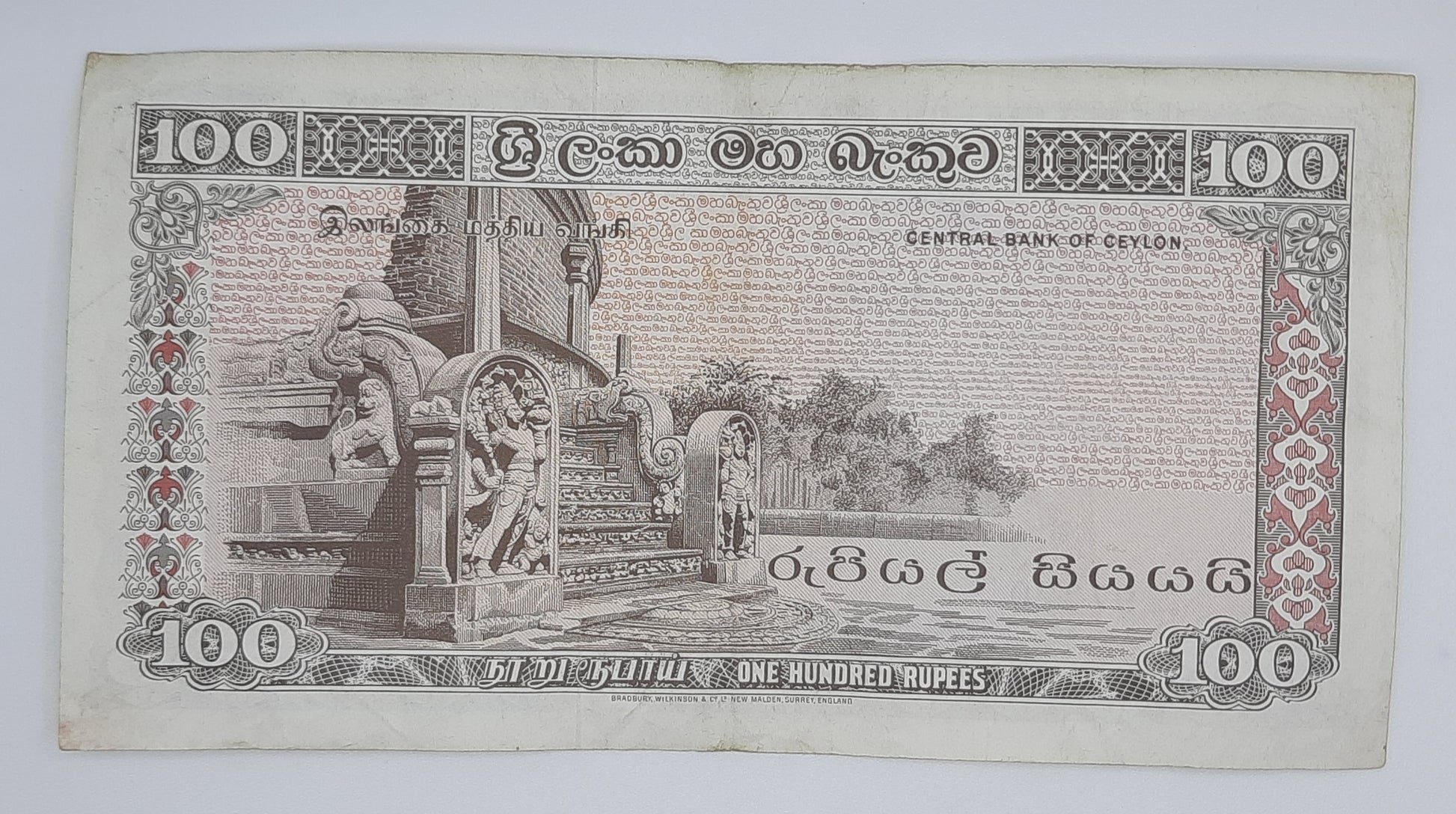 1977 Ceylon 100 Rupees Banknote (P-82) – Tribute to Sri Lanka’s Ancient Heritage