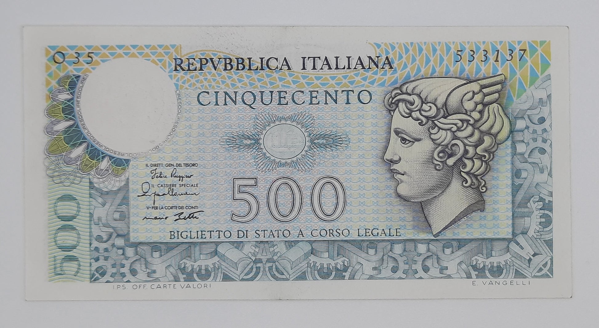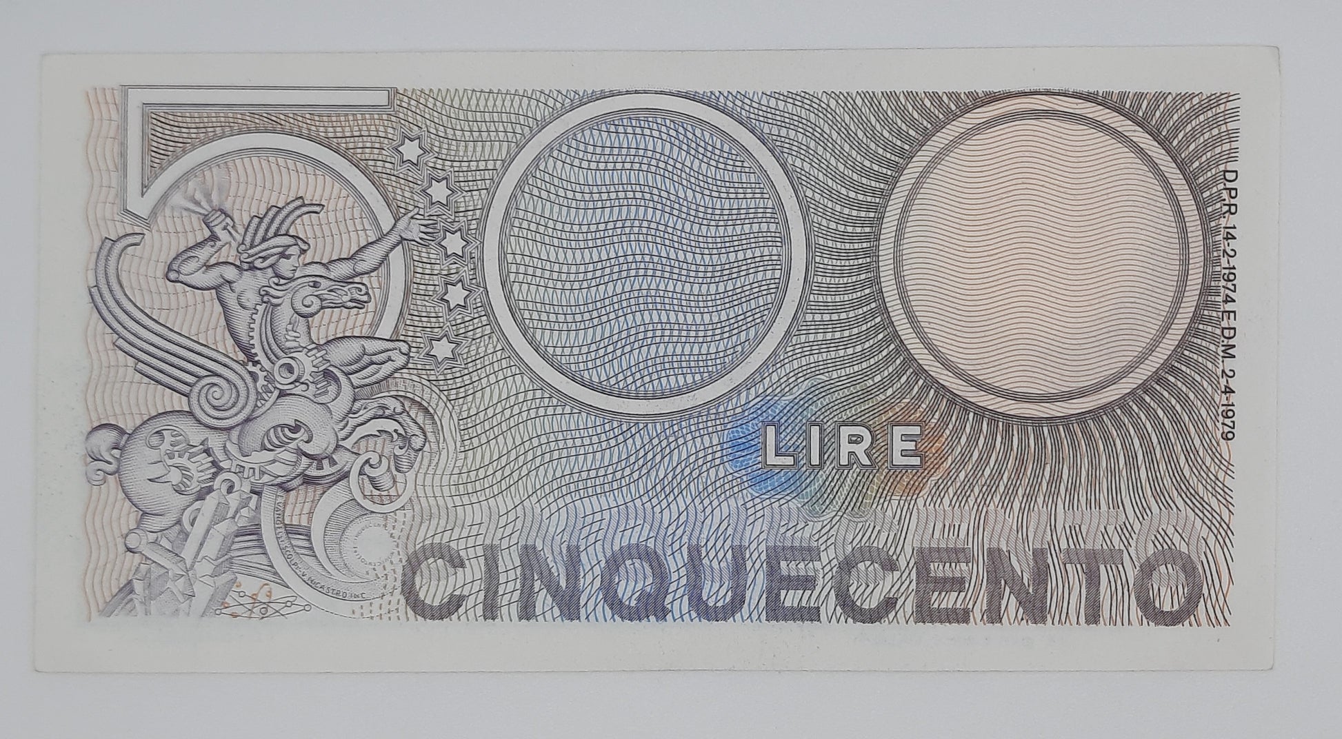 1979 Banca D'Italia, Italy - 500 Italian Lire ITL Banknote P-94 E Vangelli