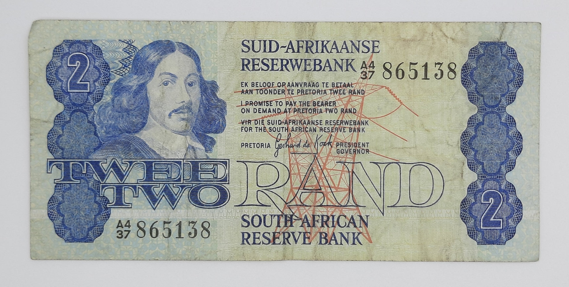 1981 South African Reserve Bank / 2 (Two) South African Rand ZAR Banknote, Bill No. A437 865138 P-118b