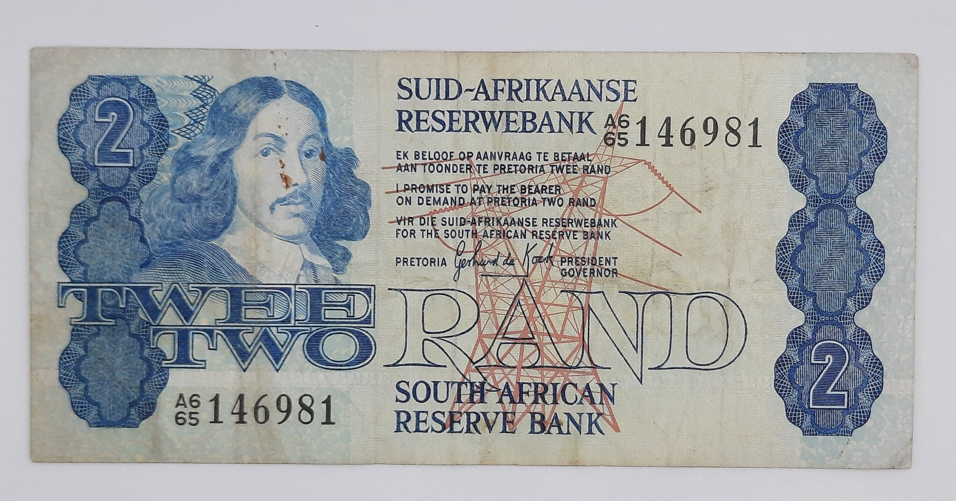 1981 South African Reserve Bank / 2 (Two) South African Rand ZAR Banknote, Bill No. A665 146981 P-118c