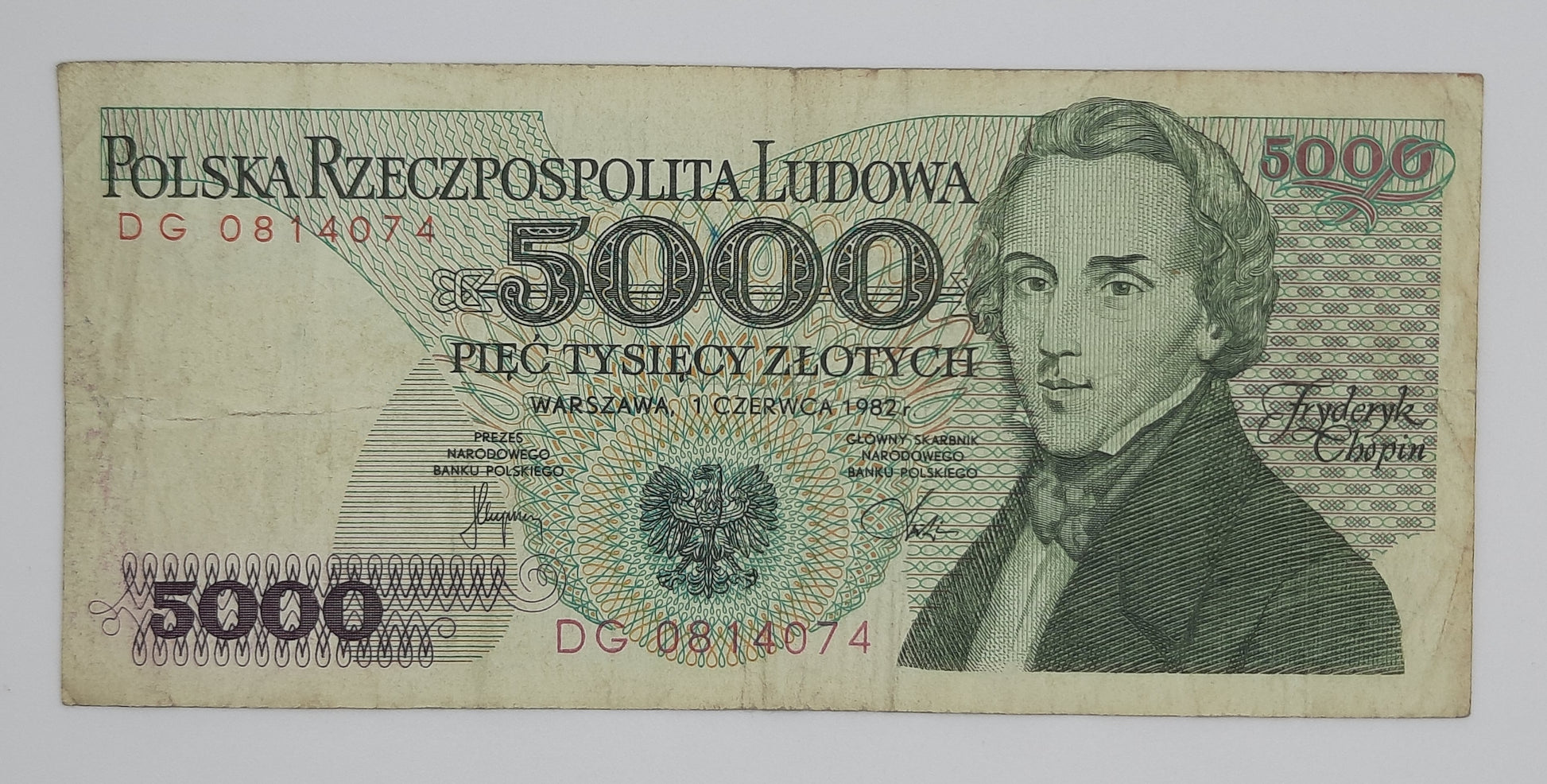1982 - Narodowy Bank Polski, Poland - 5000 Polish Zlotych PLN Banknote Serial No. DG 0814074 P-150