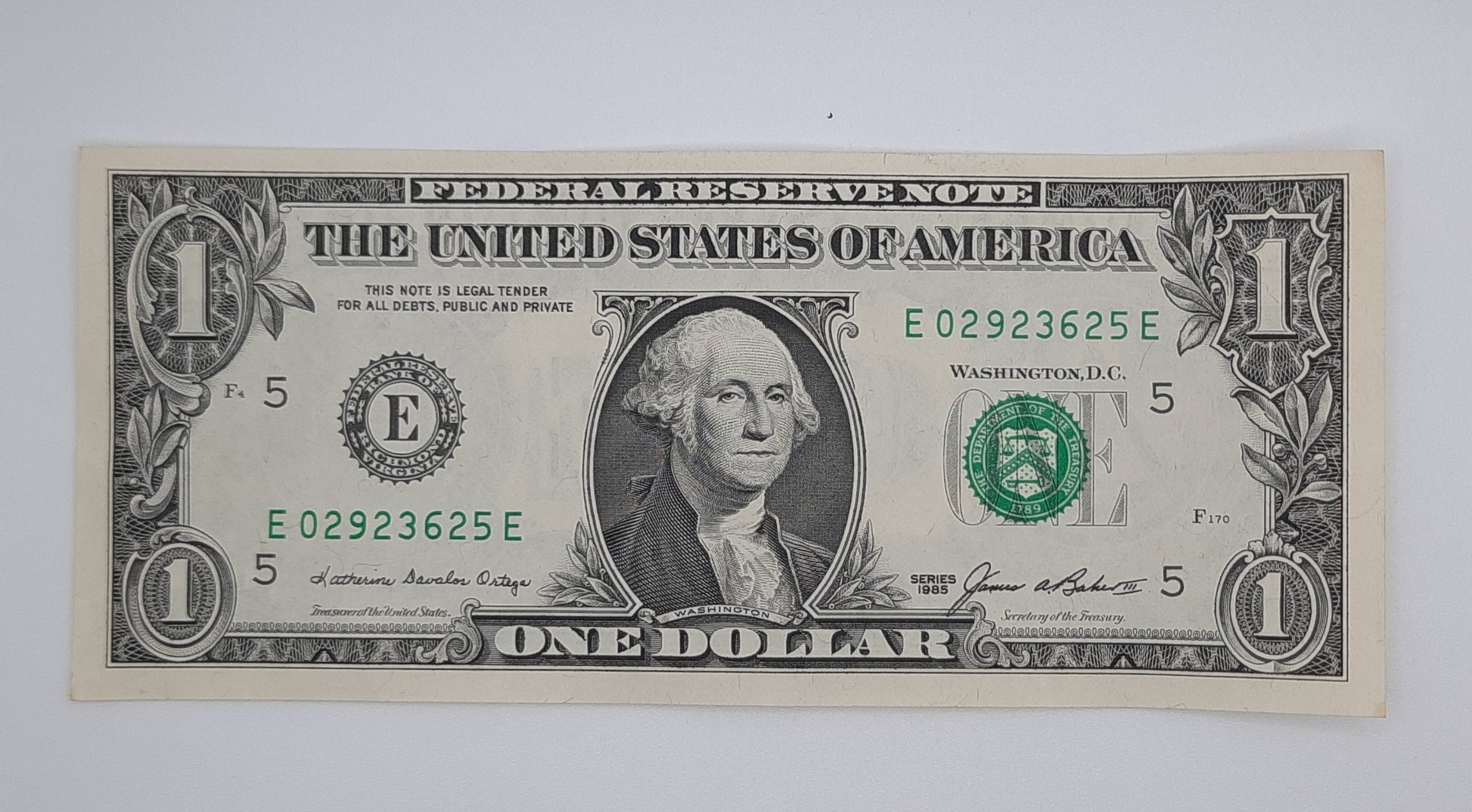 1985 United States of America - 1 (One) US Dollar Federal Reserve Banknote P-454 Serial No. E 02923625 E