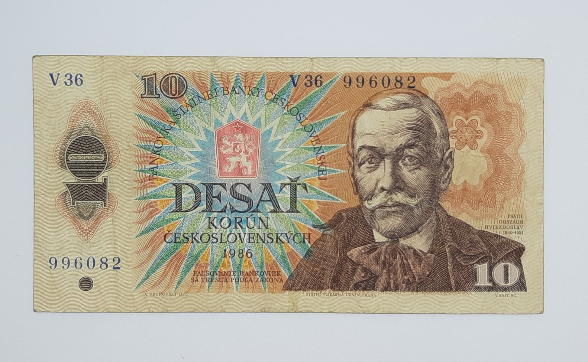 1986 - States Bank of Czechoslovakia - 10 (Ten) Korun Banknote, Serial No. V36 996082 P-94