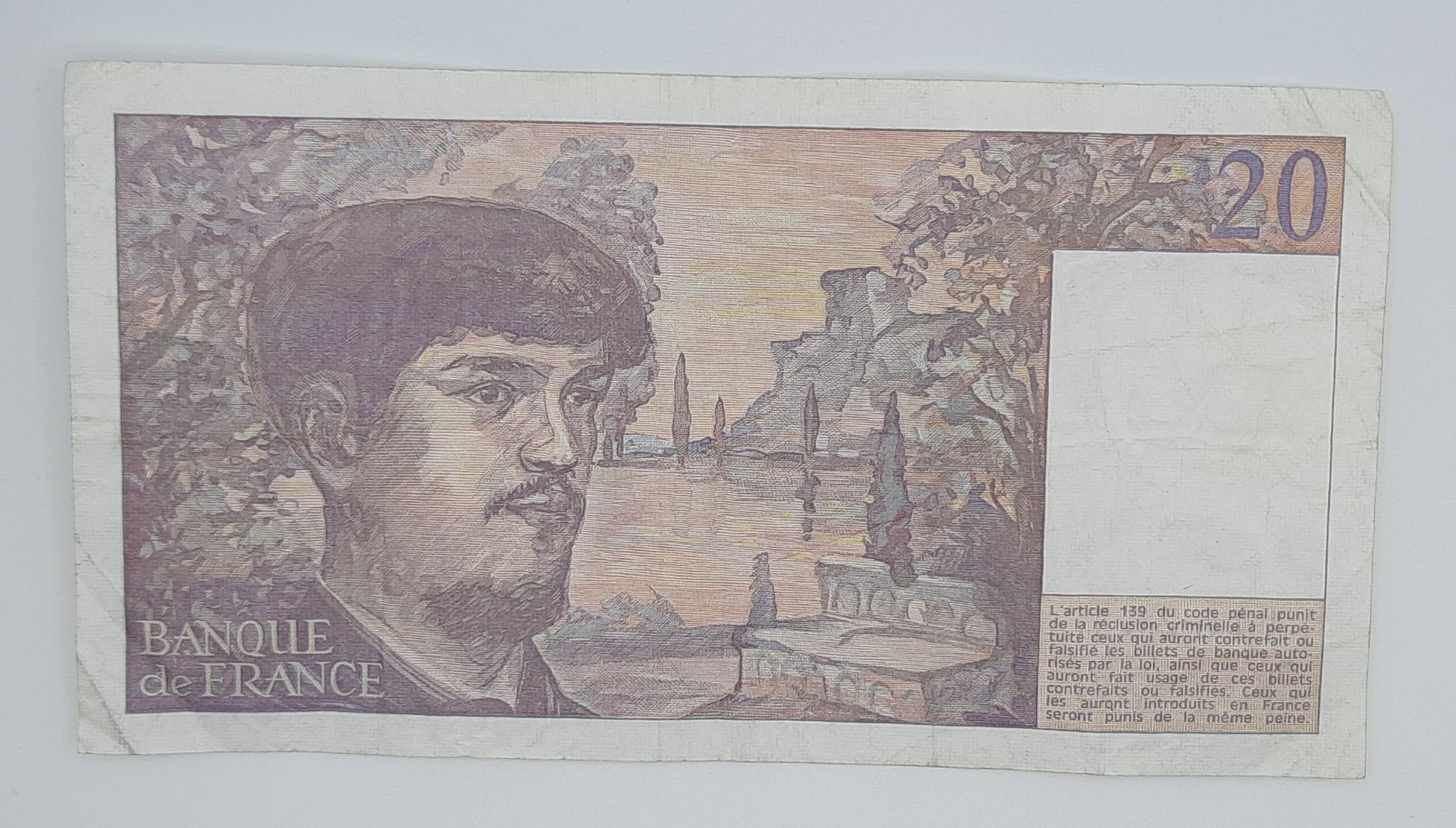 Issued by the Banque de France, this 20 Francs note was part of the 1980–1997 banknote series, reflecting France’s rich artistic and cultural heritage. The French Franc remained the country’s official currency until it was replaced by the Euro in 2002.