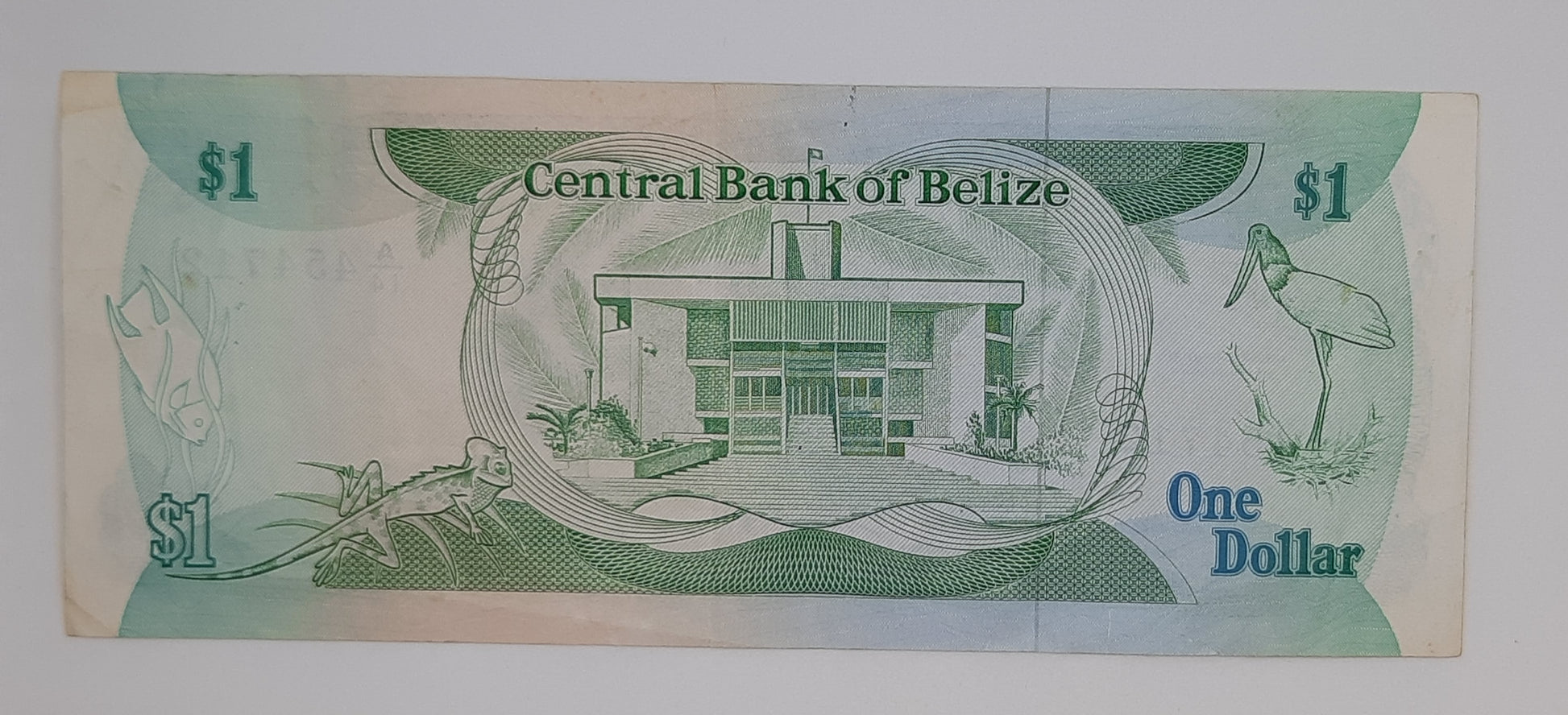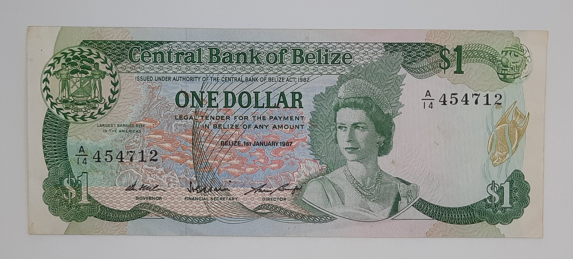 1987 Central Bank of Belize - 1 (One) Belizean Dollar Banknote Serial No. A14 454712 P-46c
