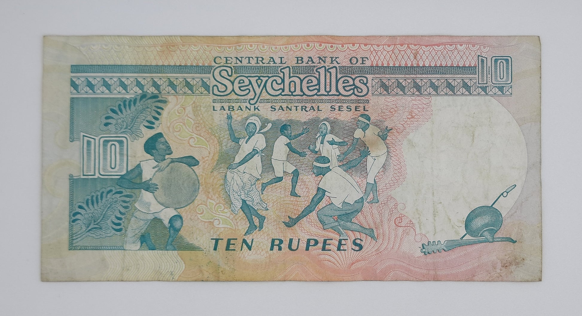 The 1989 Seychelles 10 Rupees banknote (Pick #32) is a vibrant and historically rich piece issued by the Central Bank of Seychelles. Celebrating the island nation's post-independence spirit, this note blends cultural symbolism, political milestones, and local artistry—making it a must-have for collectors of African and Indian Ocean currency.