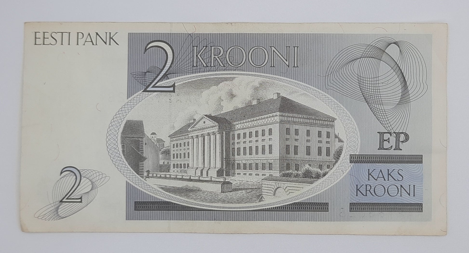 Text: “EESTI PANK – TWO KROONI” in Latin script