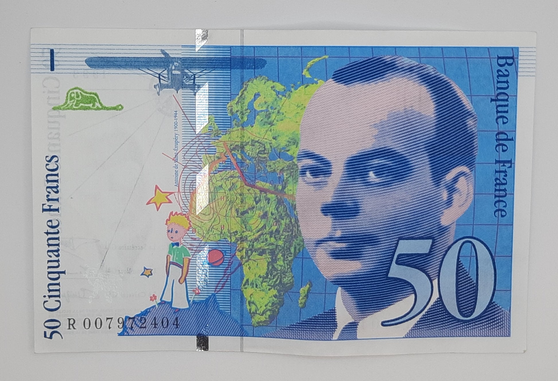 The 1993 France 50 Francs note is more than currency—it’s a gateway to France’s literary and aviation heritage. Despite its creased and folded condition, it remains a valuable and meaningful collectible for enthusiasts.
