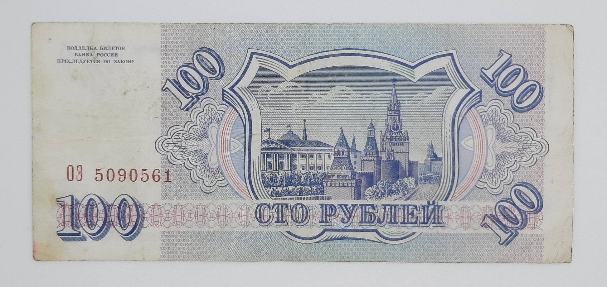 1993 Russia, Central Bank of Russia - 100 Russian Rubles Banknote Serial NO.03 509561 P-254