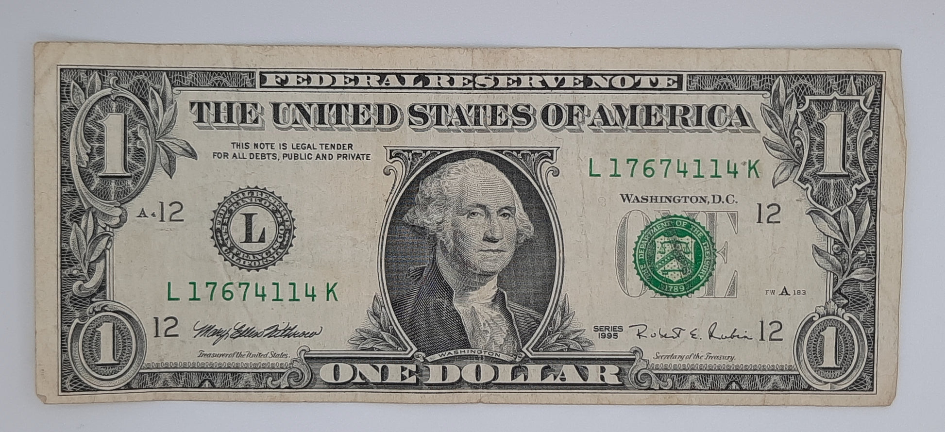 1995 United States of America - 1 (One) US Dollar Federal Reserve Banknote P-471 Serial No. L 17674114 K
