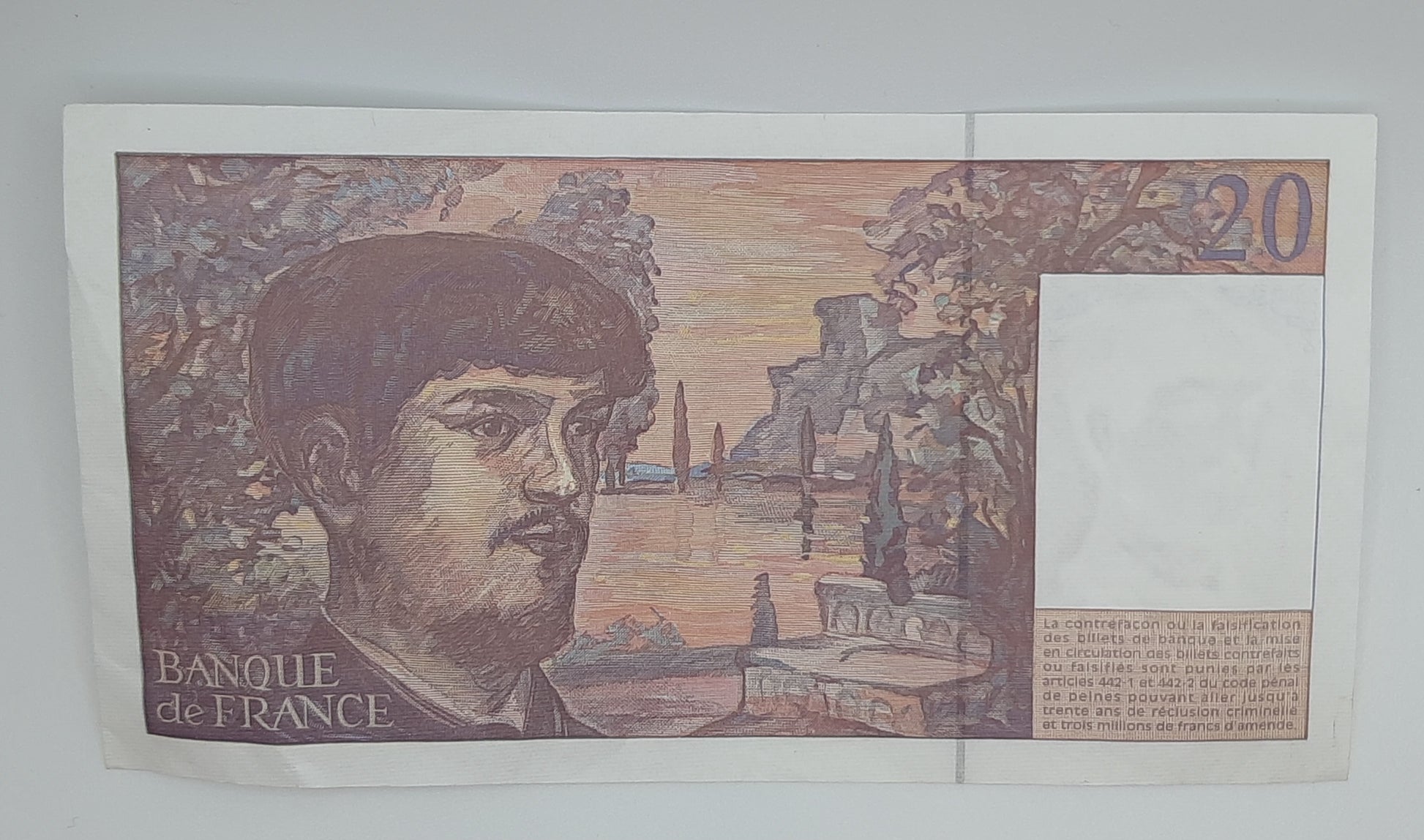 Issued by the Banque de France, this 20 Francs note was part of the 1980–1997 banknote series, reflecting France’s rich artistic and cultural heritage. The French Franc remained the country’s official currency until it was replaced by the Euro in 2002.