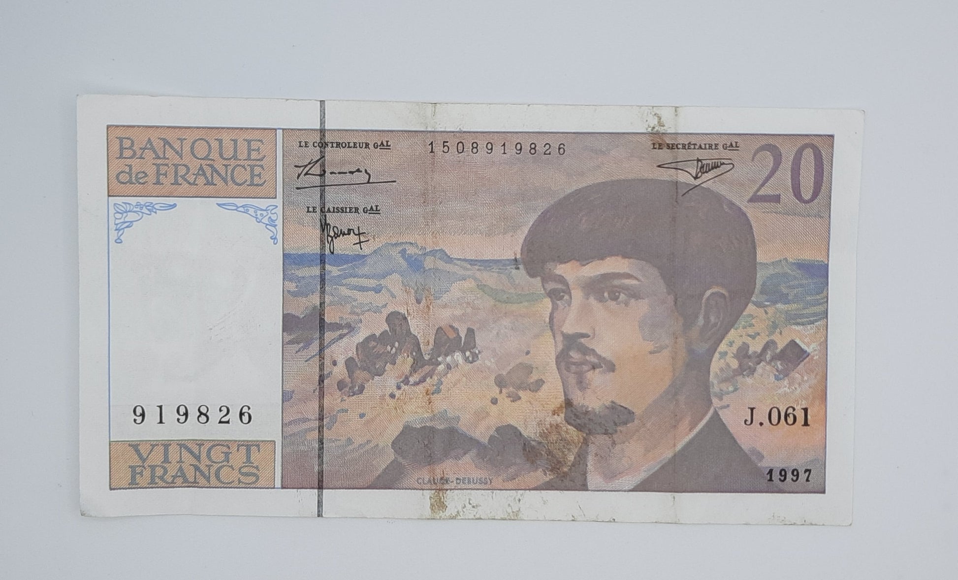1997 Banque De France - 20 (Twenty) French Francs Banknote Serial No. J061 919826