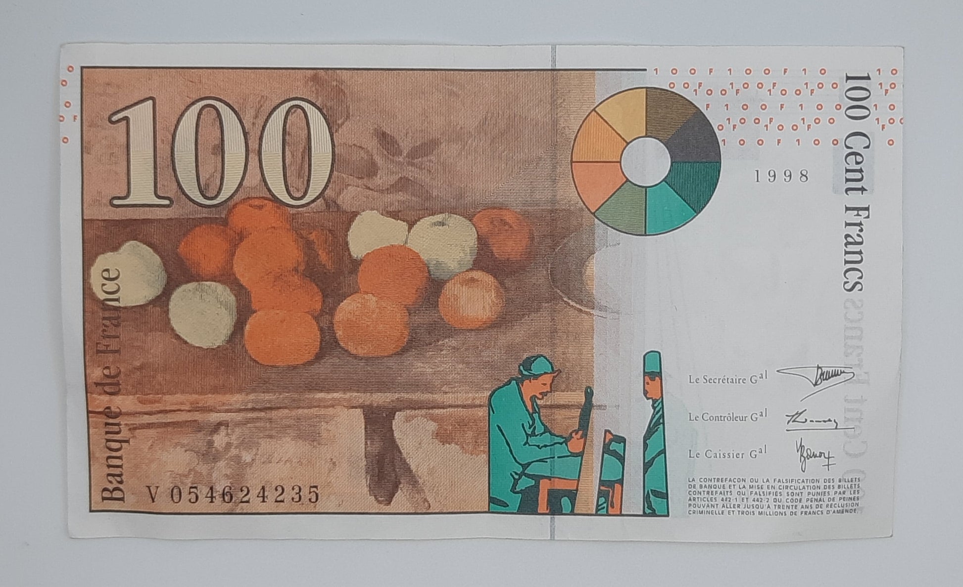Discover the 1998 France 100 Francs banknote (P-158), a tribute to Paul Cézanne, the influential French painter whose work bridged Impressionism and Cubism.