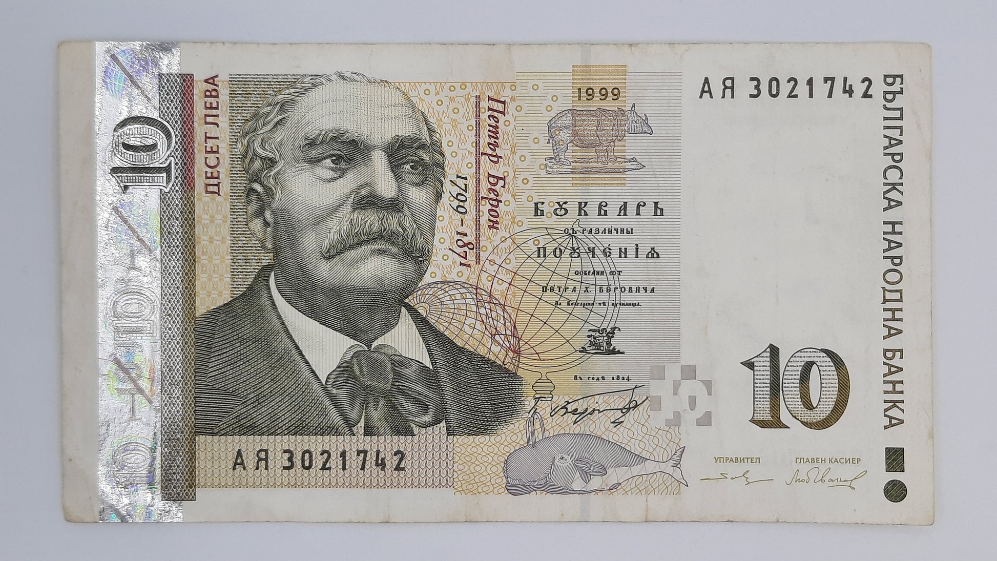 1999 Bulgaria , Bulgaria Narodna Banka - 10 (Ten) Bulgarian Leva Serial No. Ar 3021742 P-117a