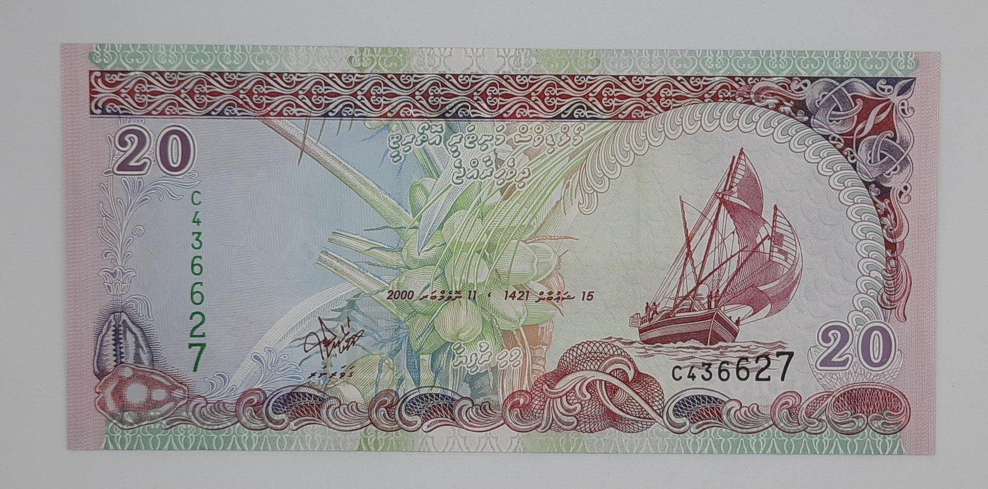 2000 Maldives Monetary Authority - 20 Maldivian Rufiyaa Banknote Serial No. C 436627 P-20