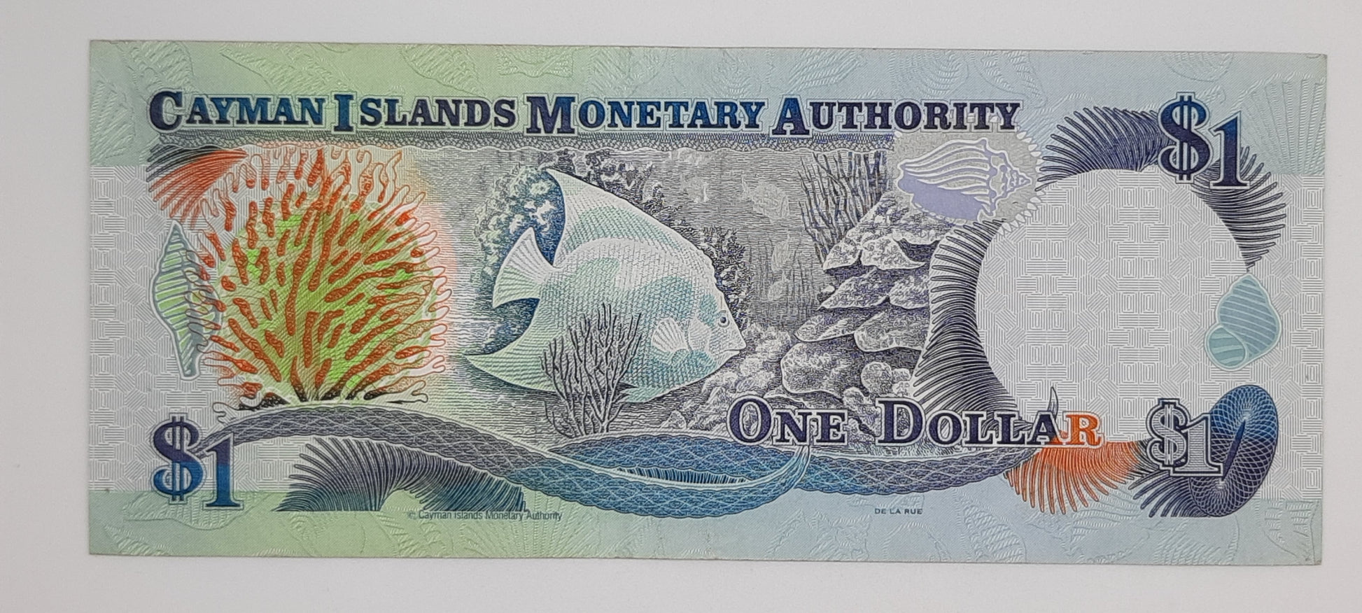 Text: Cayman Islands Monetary Authority – This note is legal tender for One Dollar