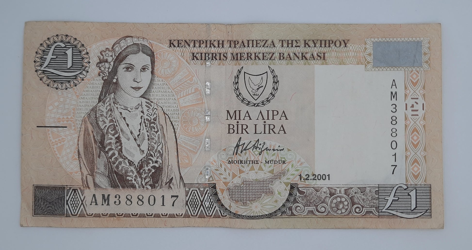 2001 Central Bank of Cyprus - 1 (One) Cypriot Pound Banknote P-60a Serial No. AM 388017