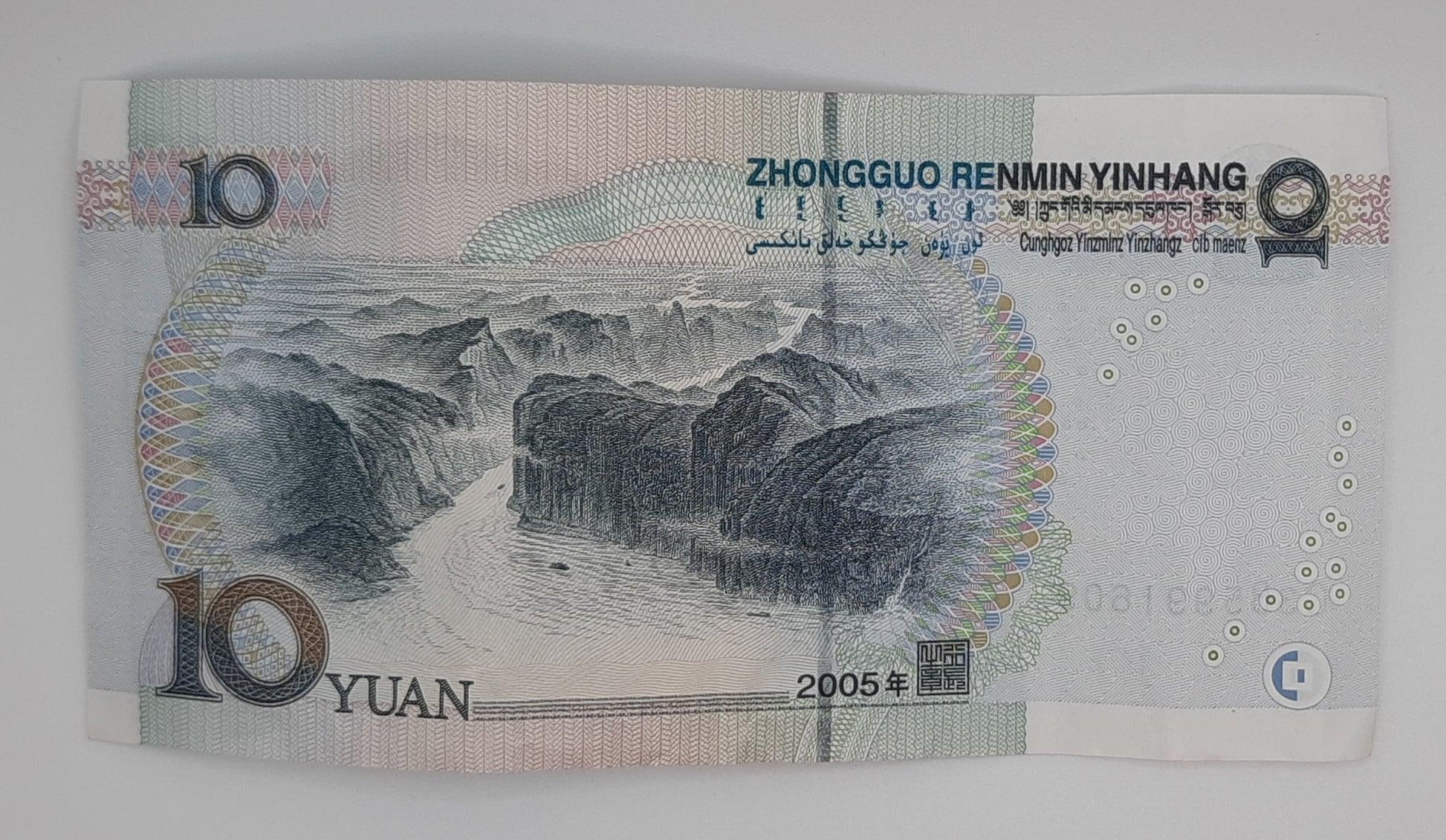 Issued by the People’s Bank of China in 2005, this 10 Yuan note belongs to the Fifth Series of Renminbi banknotes and features enhanced security upgrades over its 1999 predecessor. It celebrates both Chairman Mao Zedong, the founding father of modern China, and the natural grandeur of the Three Gorges of the Yangtze River. With its multilingual inscriptions and intricate design, this note reflects China’s ethnic diversity and national pride.
