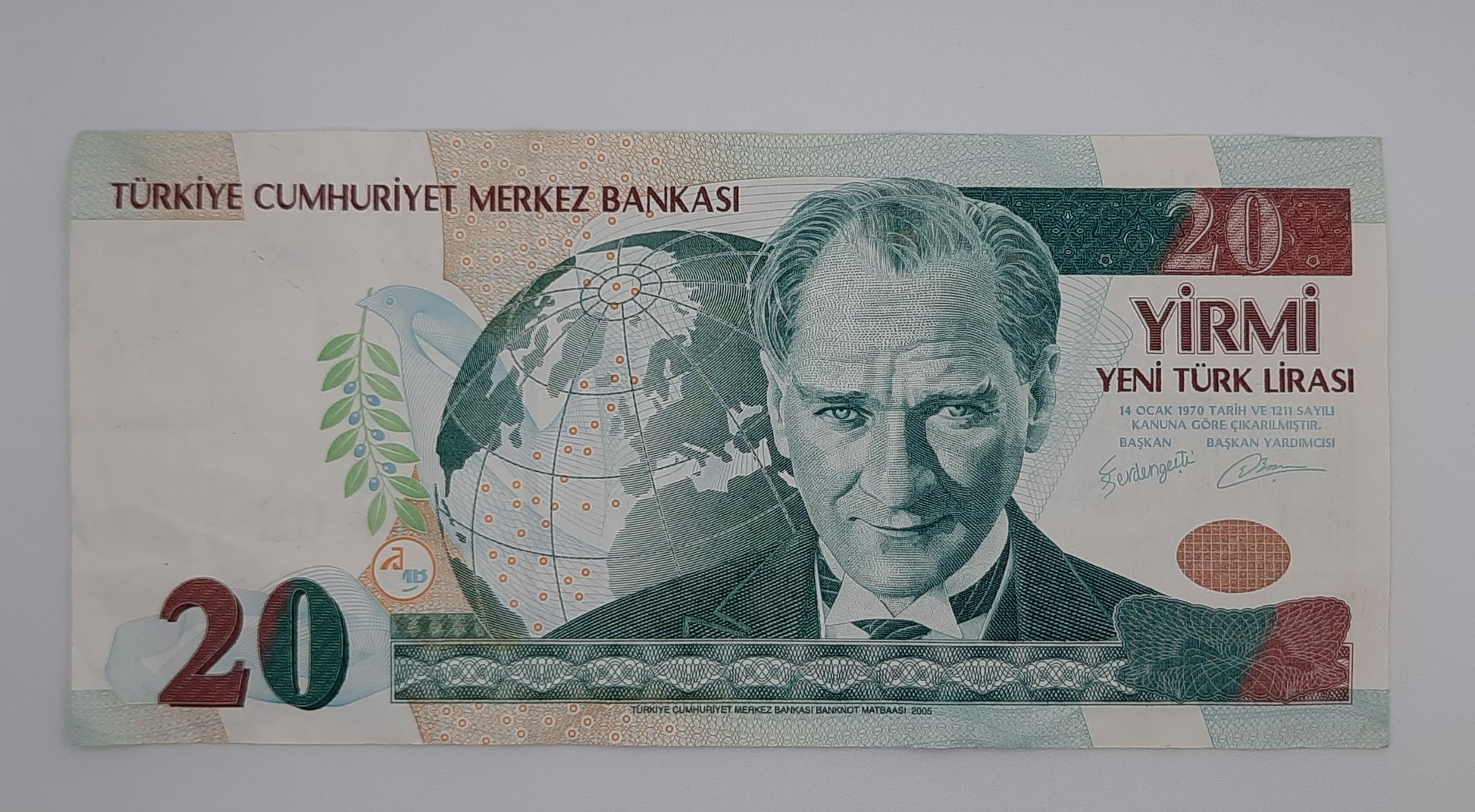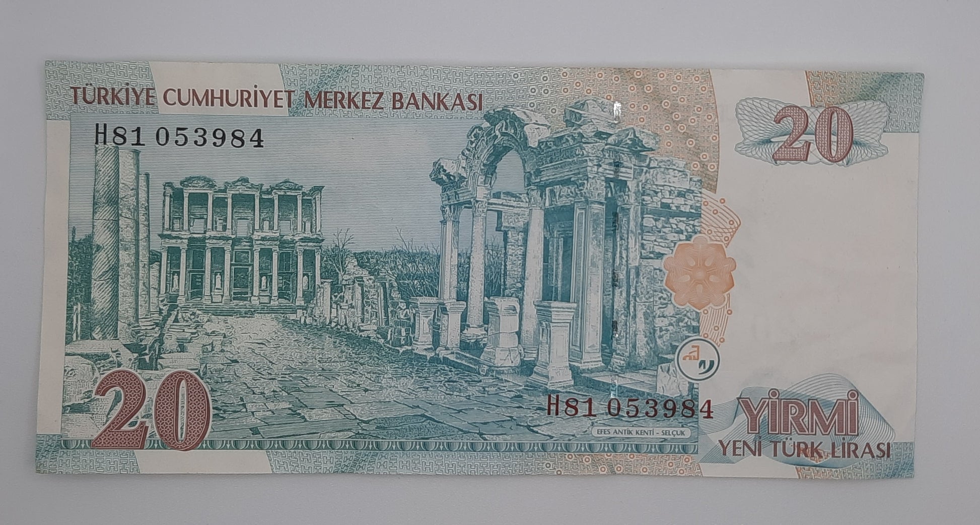 2005 Central Bank of TURKEY - 20 Turkish Lira Banknote Serial No. H81 053984 P-219a.2