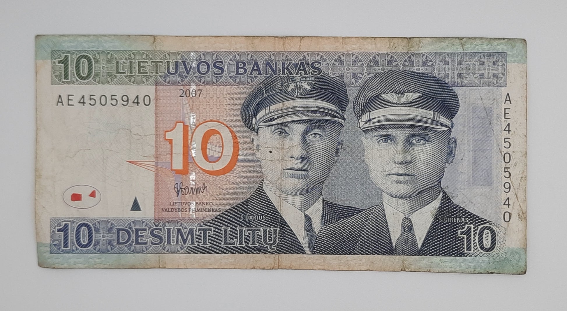 Lithuania 10 Litu Banknote – Darius & Girėnas Aviation Tribute (2007 Issue)