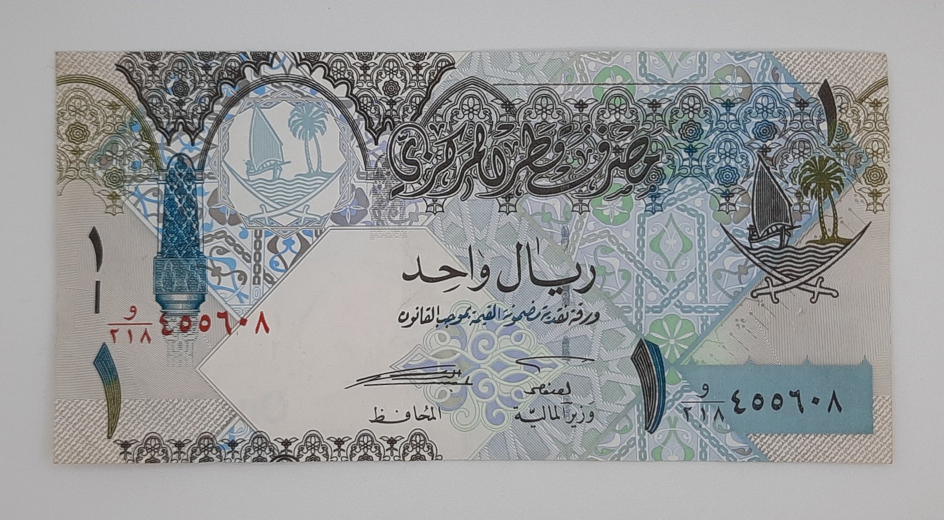 2008 The Qatar Monetary Agency - 1 (One) Qatari Riyal Banknote P-28a Serial No. 455608