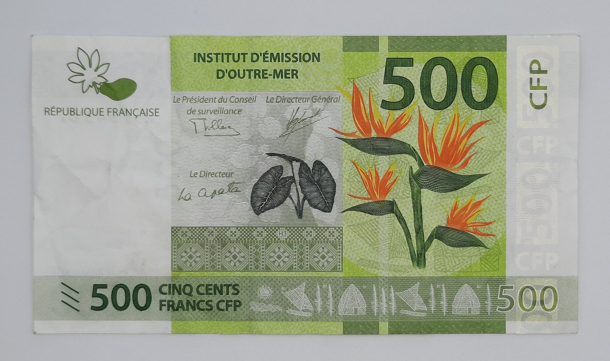 Discover the 2014 French Pacific Territories 500 CFP Francs banknote (P-5b), a beautifully designed note reflecting the rich cultural and natural heritage of French Polynesia, New Caledonia, and Wallis & Futuna.