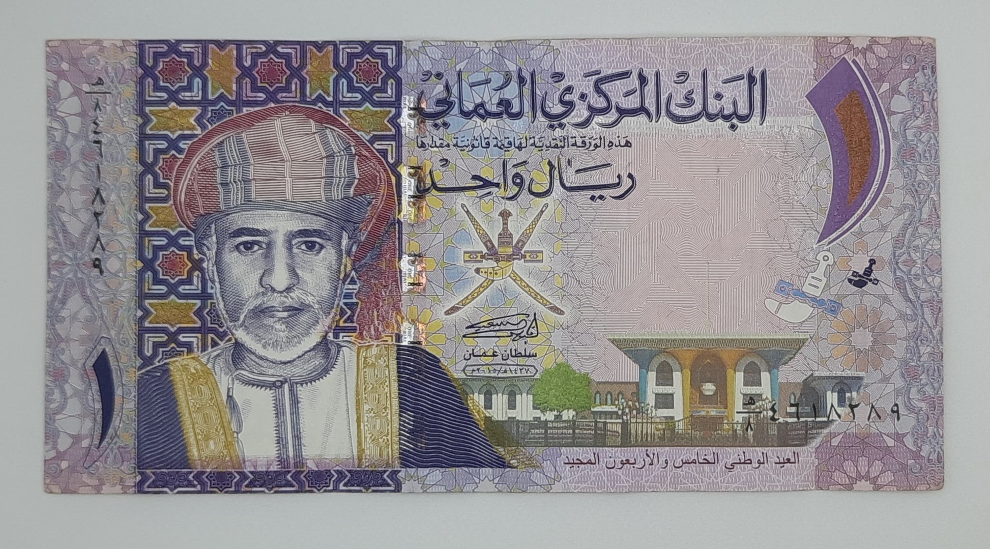2015 Central Bank of Oman - 1 (One) Omani Rial Banknote Serial No. 4618289 P-44 Sultan Qaboos
