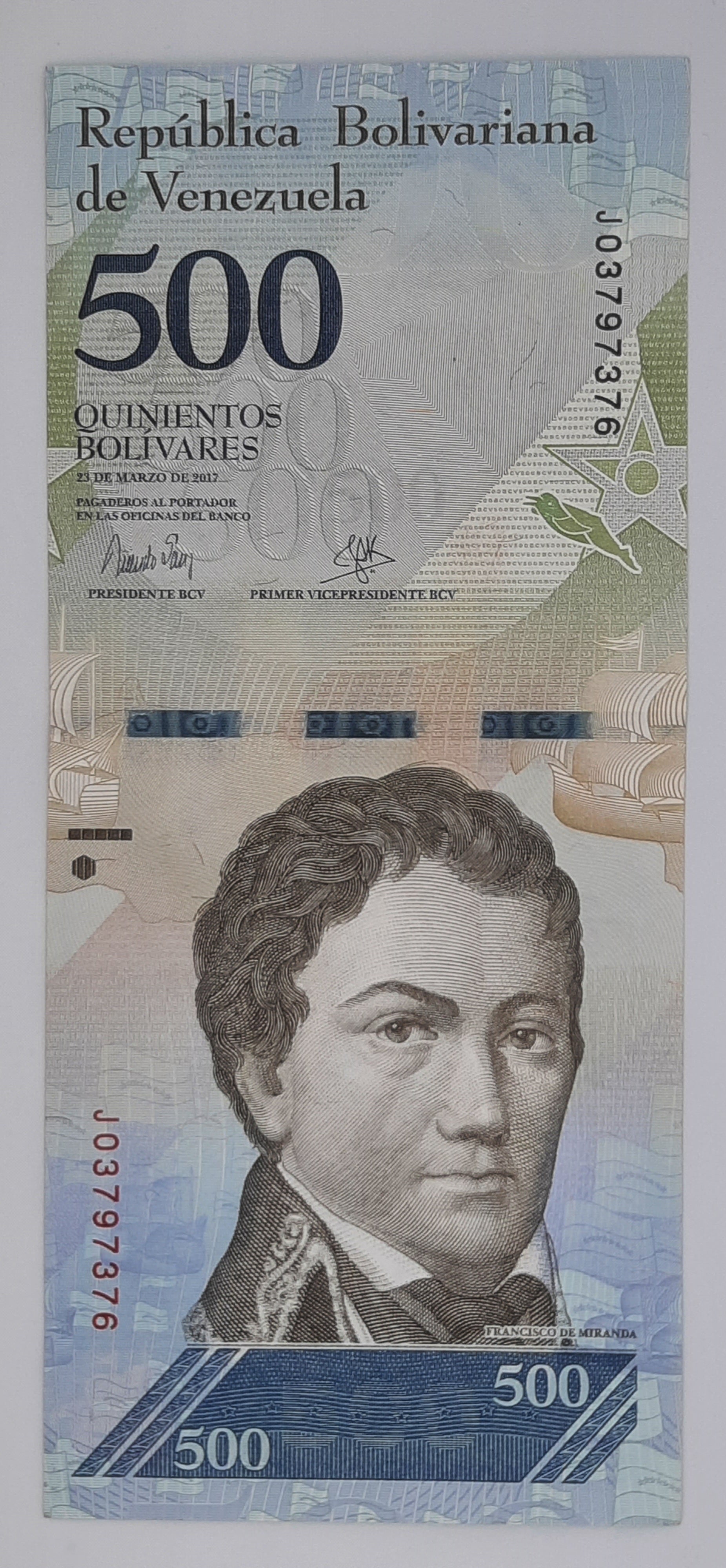 Watermark: Francisco de Miranda’s portrait with the numeral "500"