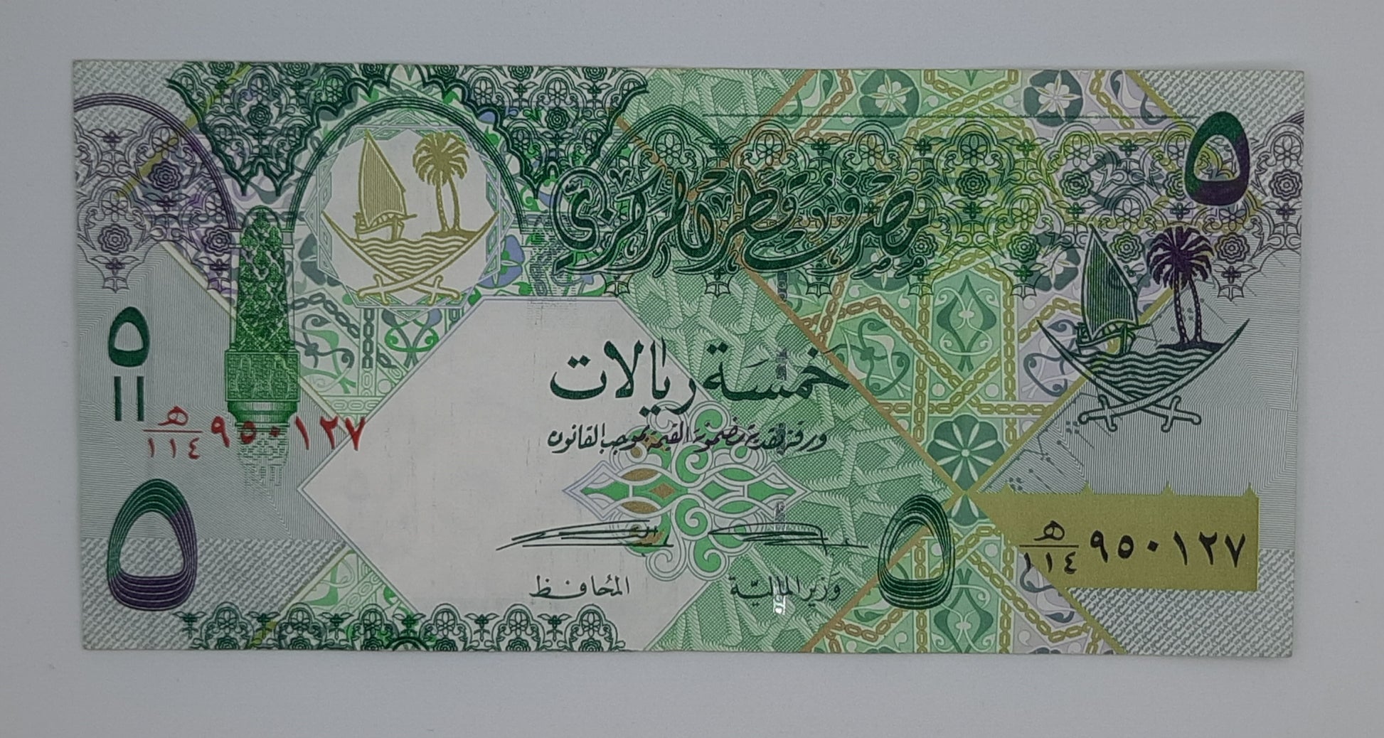2017 The Qatar Central Bank - 5 (Five) Riyals Banknote Serial No. 950127 P-29b