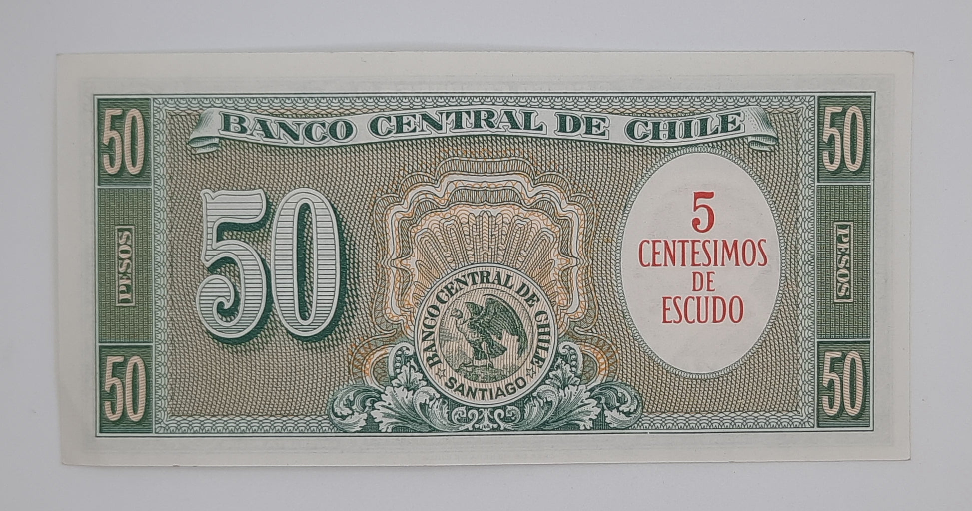 Chile – 5 Céntesimos – ND (1960–1964) – Overprint on 50 Pesos Pick# 126b | Overprint Note on Pick# 121 | Numista# 205210